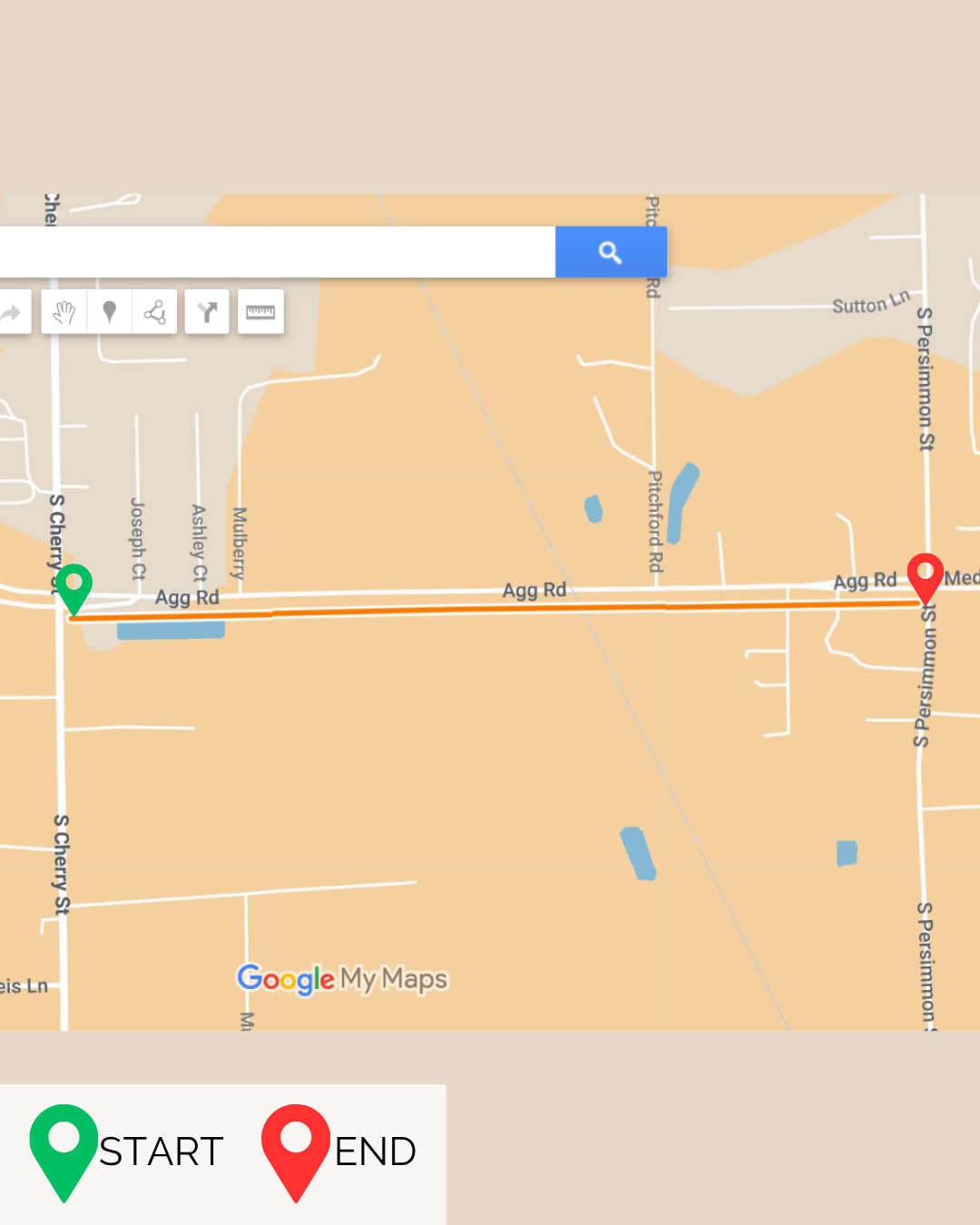 • Stay off of the road, from RR tracks to S Persimmon, stay on north side of road.